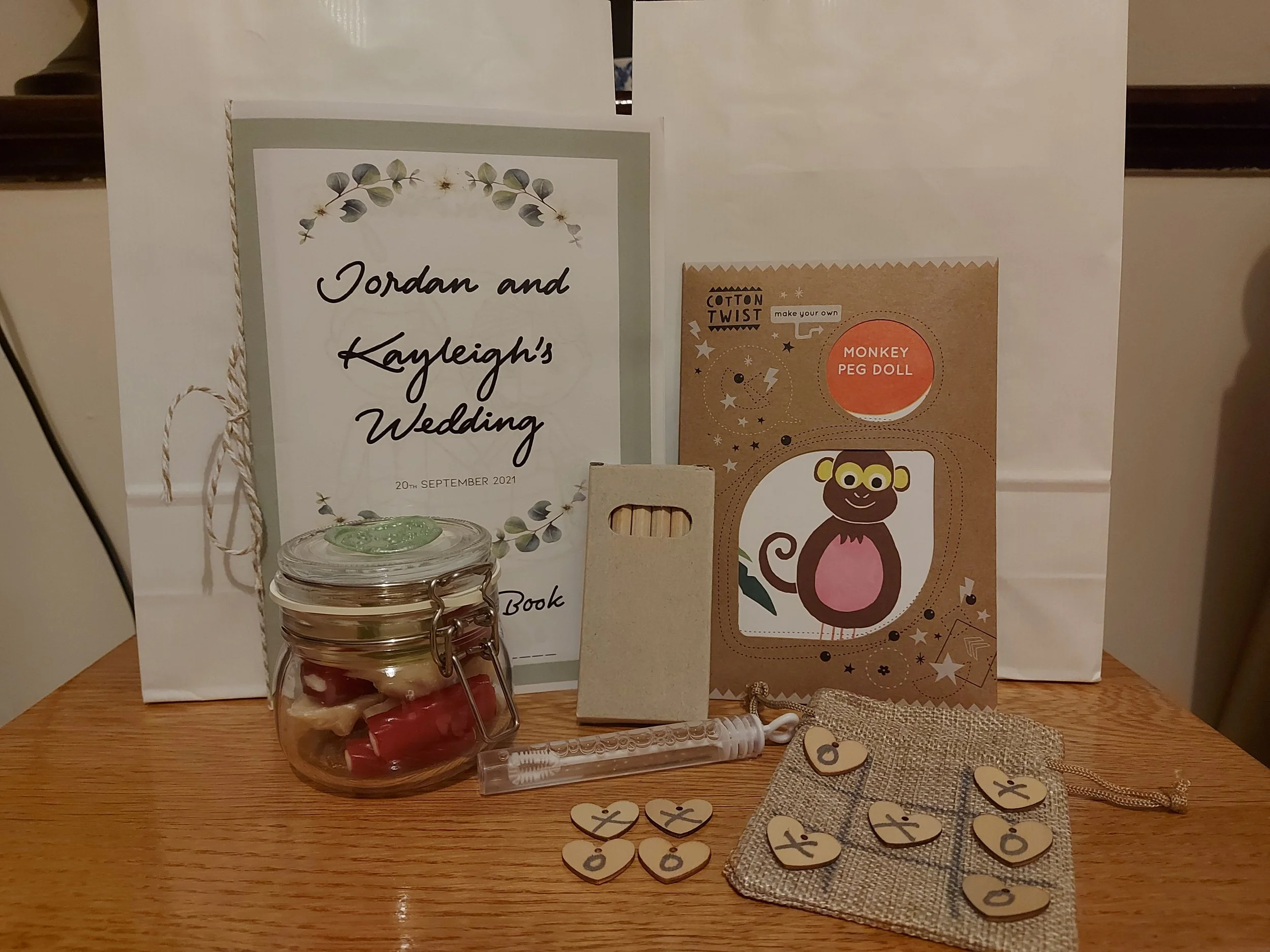 A custom booklet, themed to the wedding and filled with fun games and colouring pages.